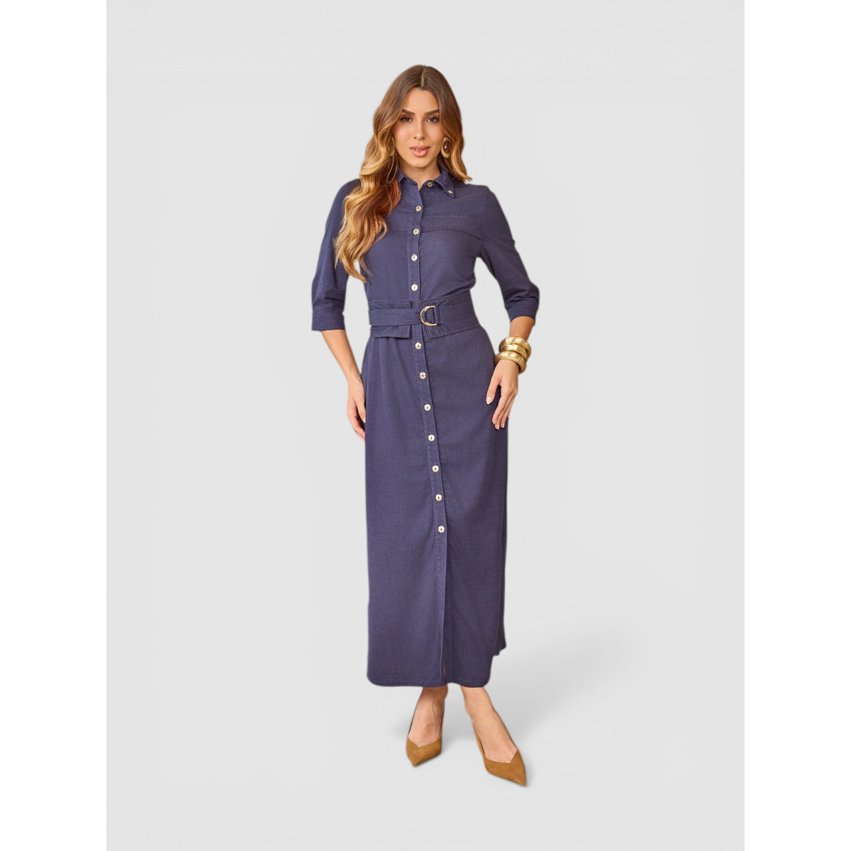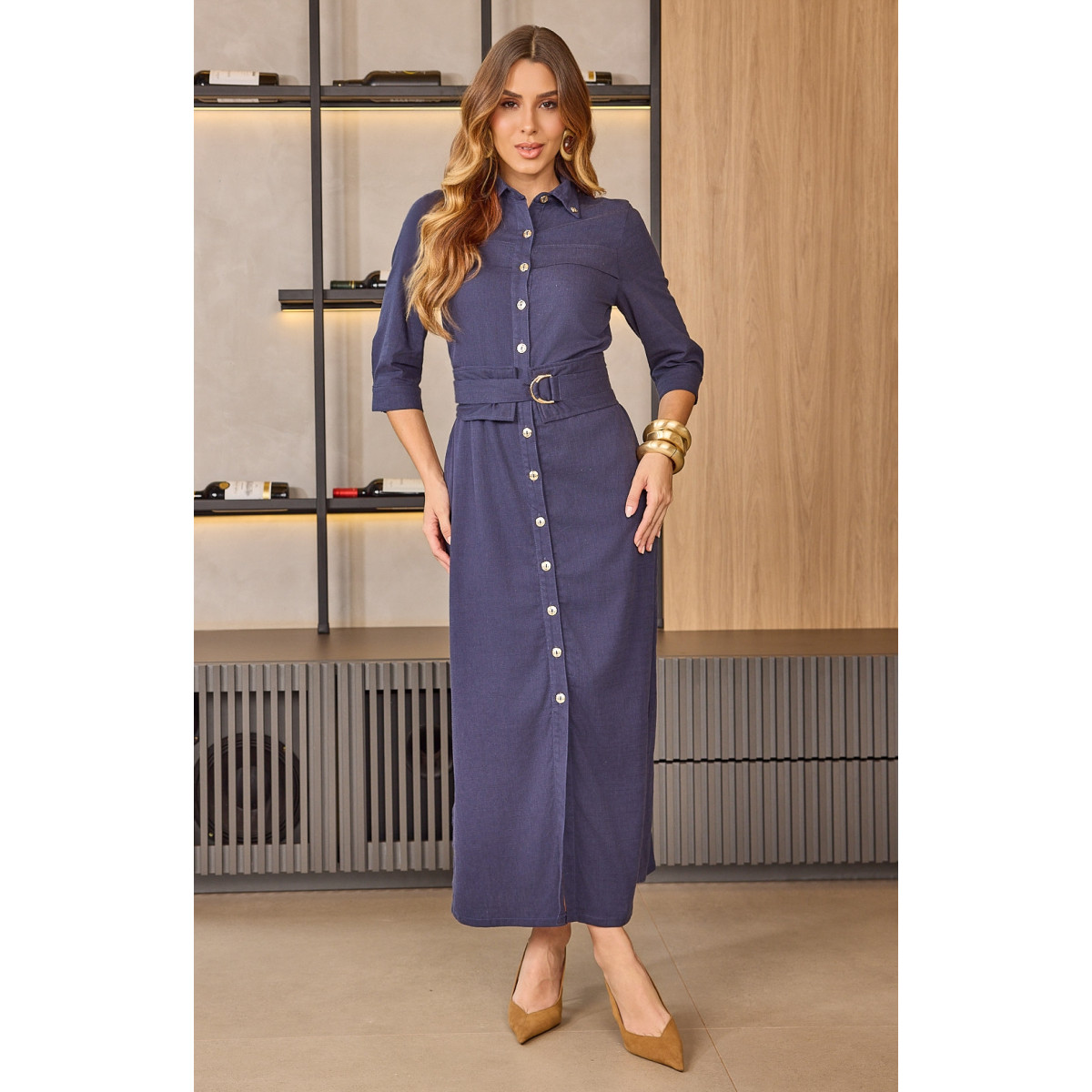 Etiquetas: vestido midi vestido chemise vestido azul marinho vestido com cinto vestido elegante feminino vestido manga 3/4 vestido moda evangélica vestido sofisticado D’azul Loja Maressa Fashion Indaiatuba SP